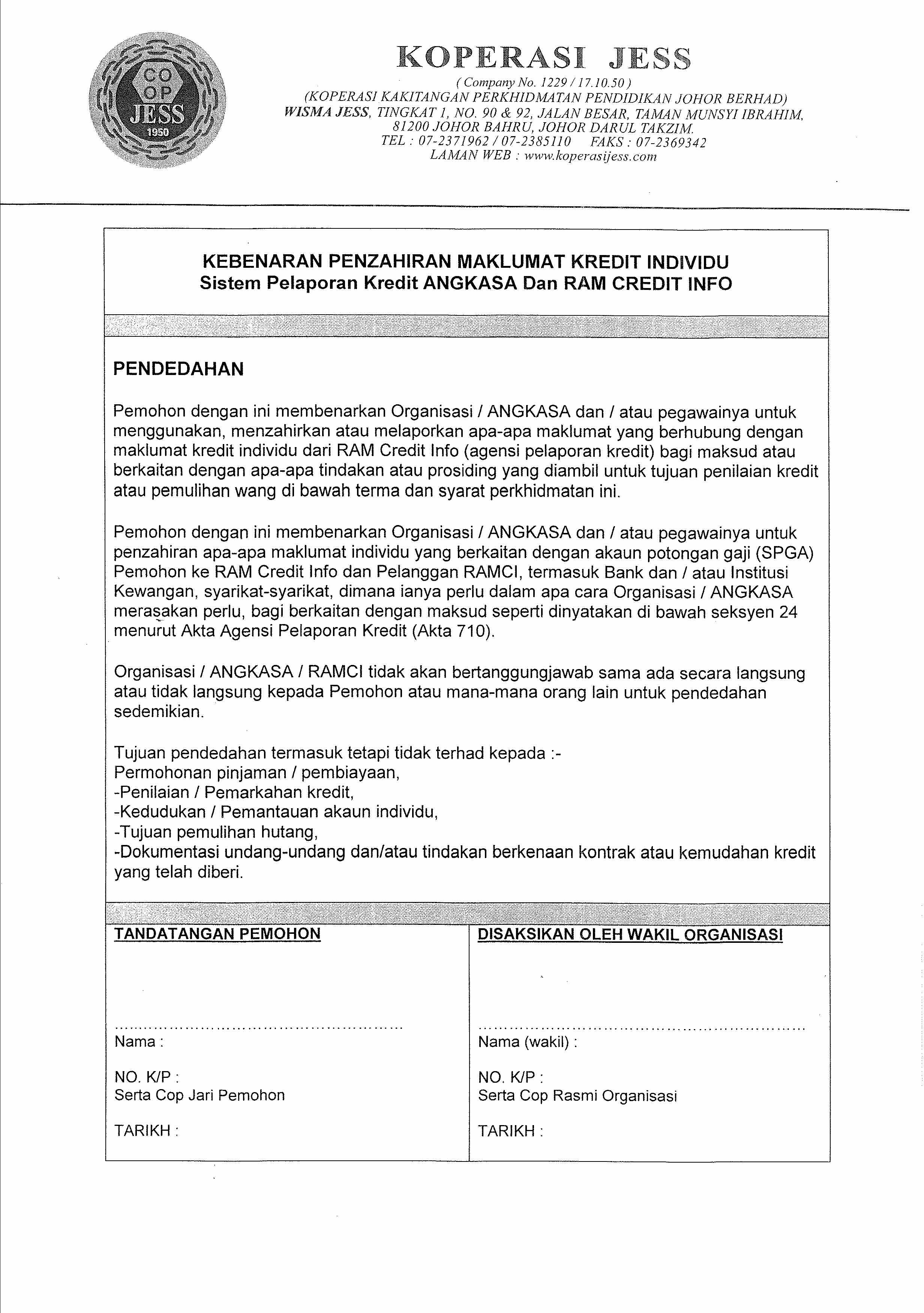 1. Borang Permohonan Pembiayaan (Pinjaman)